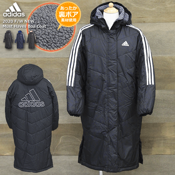 アディダス ボア付き 中綿ロングコート ベンチコート ロング丈 キッズ ジュニア 男の子 女の子 ボーイズ ガールズ adidas 子供用 アウター スポーツ観戦 アウトドア 春秋冬 キャンプ 通学 部活動 ブラック ネイビー 110cm 120cm 130cm 140cm 150cm 160cm 170cm 送料無料